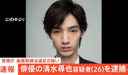 麻薬取締法違反の疑いで逮捕されたのは俳優の清水尋也容疑者(26)です。