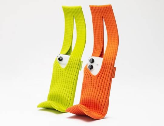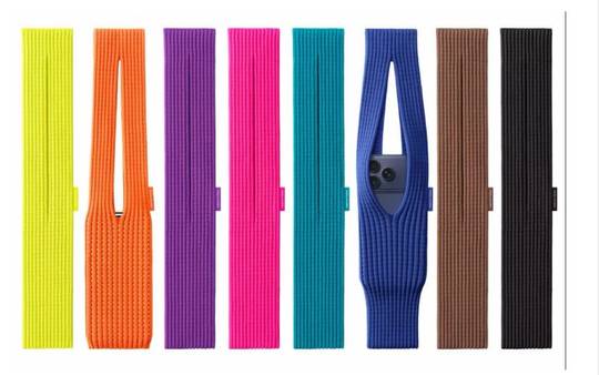 すべてのiPhoneに対応するようデザインされ、伸縮することでiPhone本体を包み込む。さらに、日用品などを入れたり、手で持ったり、あるいはかばんに結んだり、体に身につけるなど、様々な使い方を想定。ストラップのサイズは2タイプがラインナップし、ショートストラップ(価格: 2万5800円)はレモン、マンダリン、パープル、ピンク、ピーコック、サファイア、シナモン、ブラックの8色、ロングストラップ(価格: 3万9800円)はサファイア、シナモン、ブラックの3色が展開。