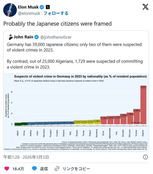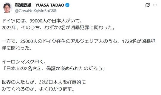 イーロン・マスク氏、日本人の犯罪率を称賛