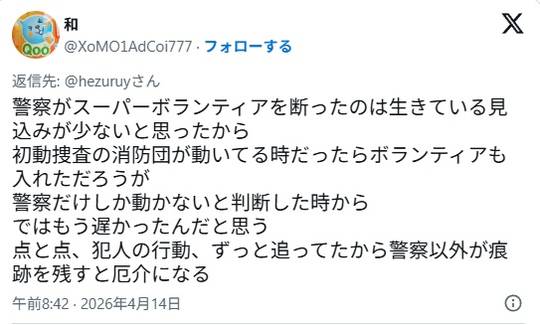 単なる行方不明事件の線が薄くなってんのにボランティアなんぞ受け入れて現場を荒らされたらおわりなことくらい理解できんか?
