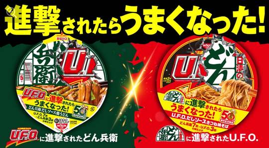 発売50周年「日清のどん兵衛」と「日清焼そばU.F.O.」が互いに“進撃”! 特製だしソースのコラボ商品を発売